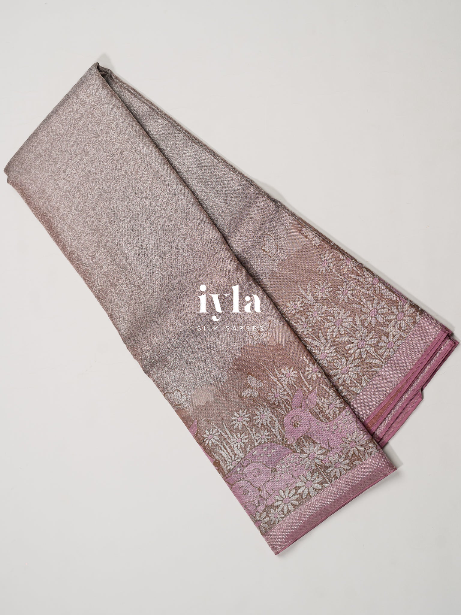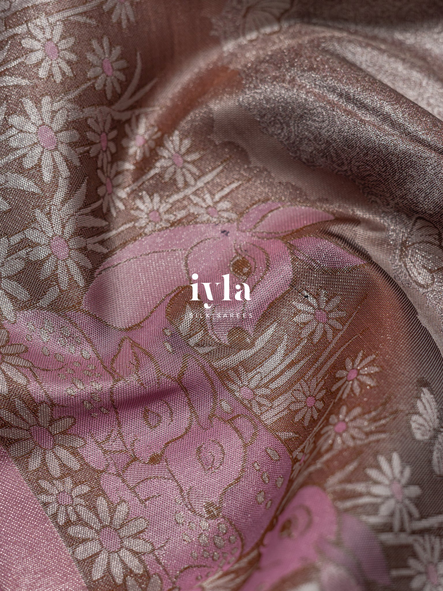 The Deer in Petalscape Kanjeevaram in Pastel Pink