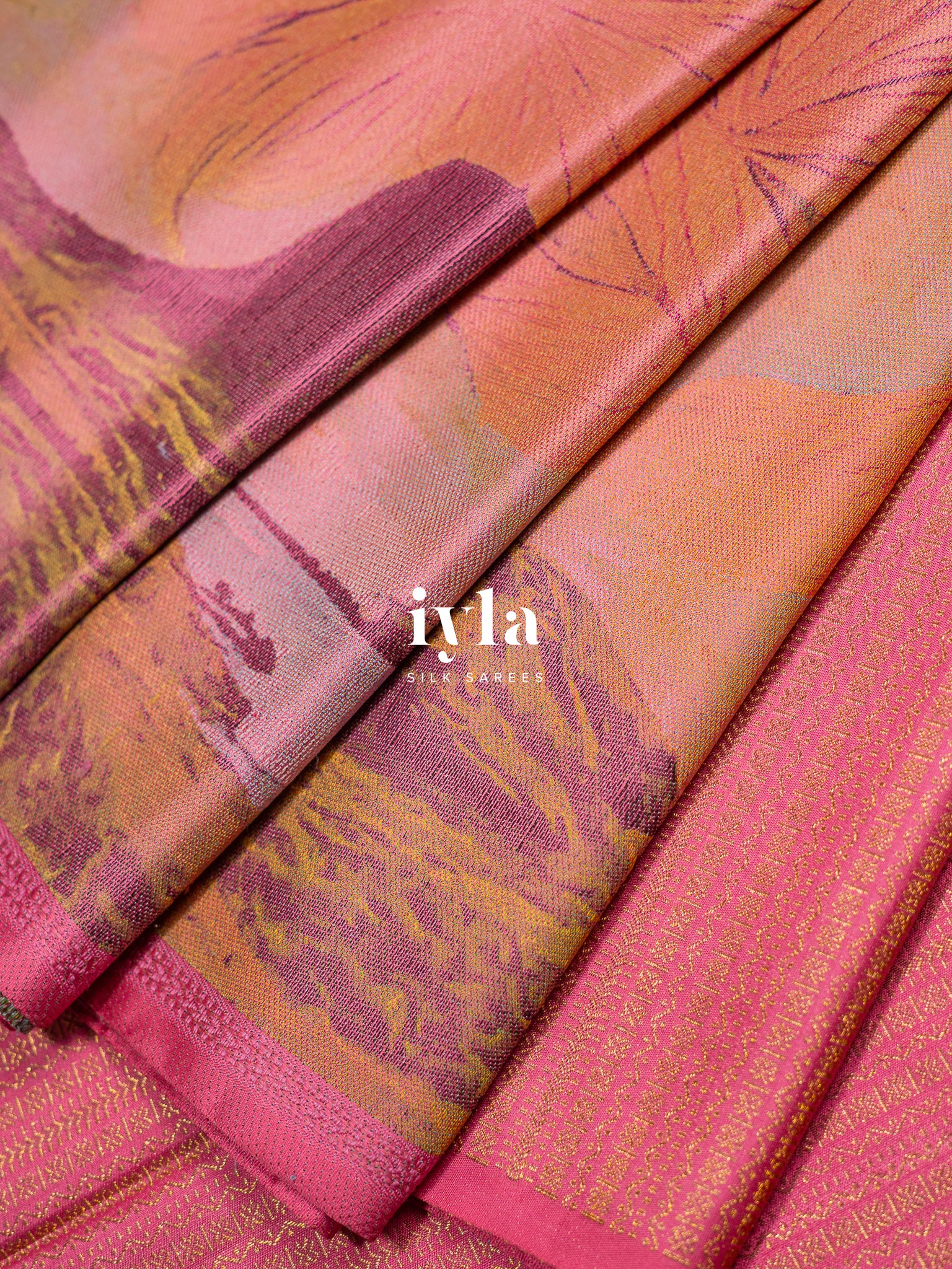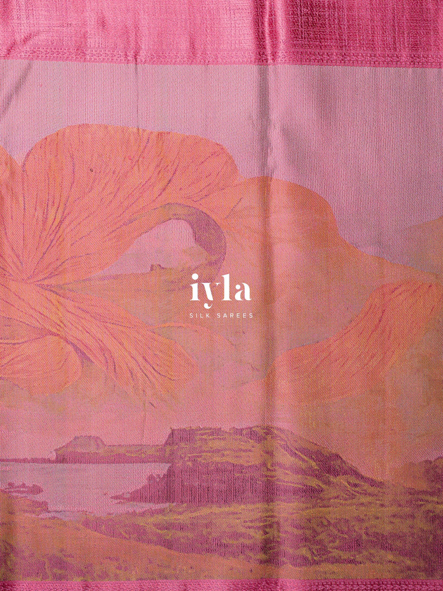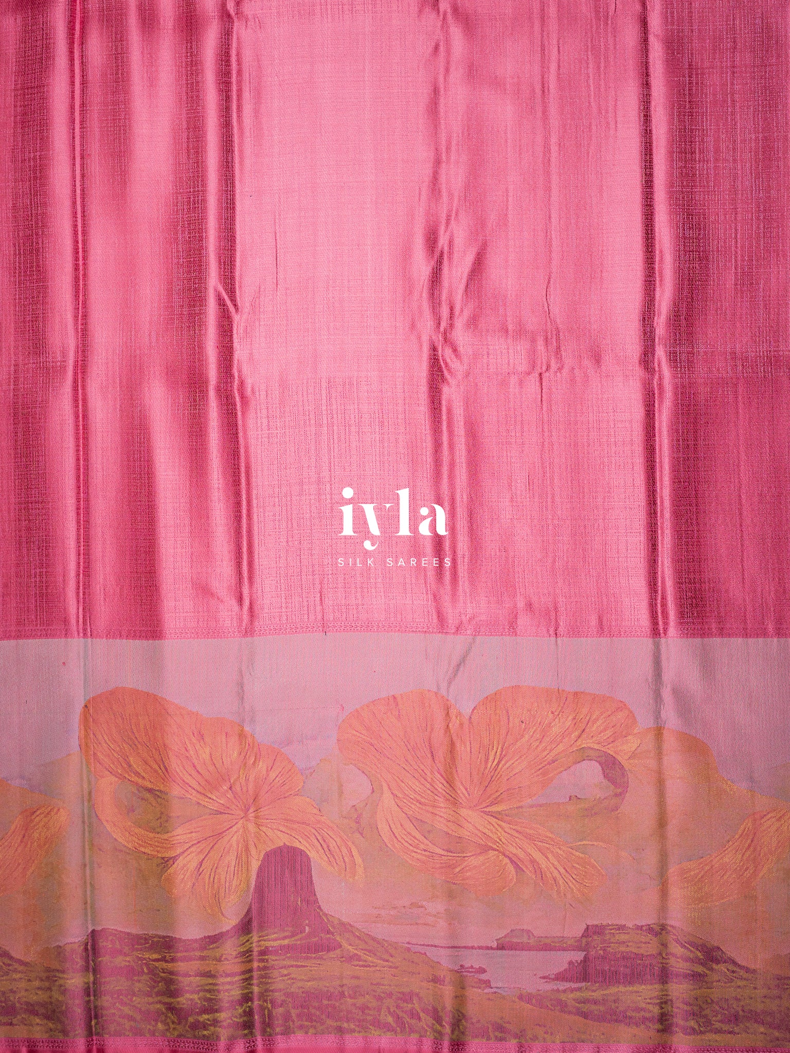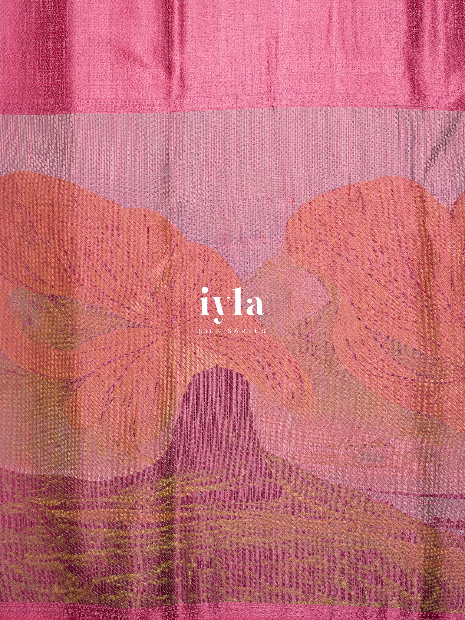 The Mountains of Iceland Kanjeevaram in Bubblegum Pink