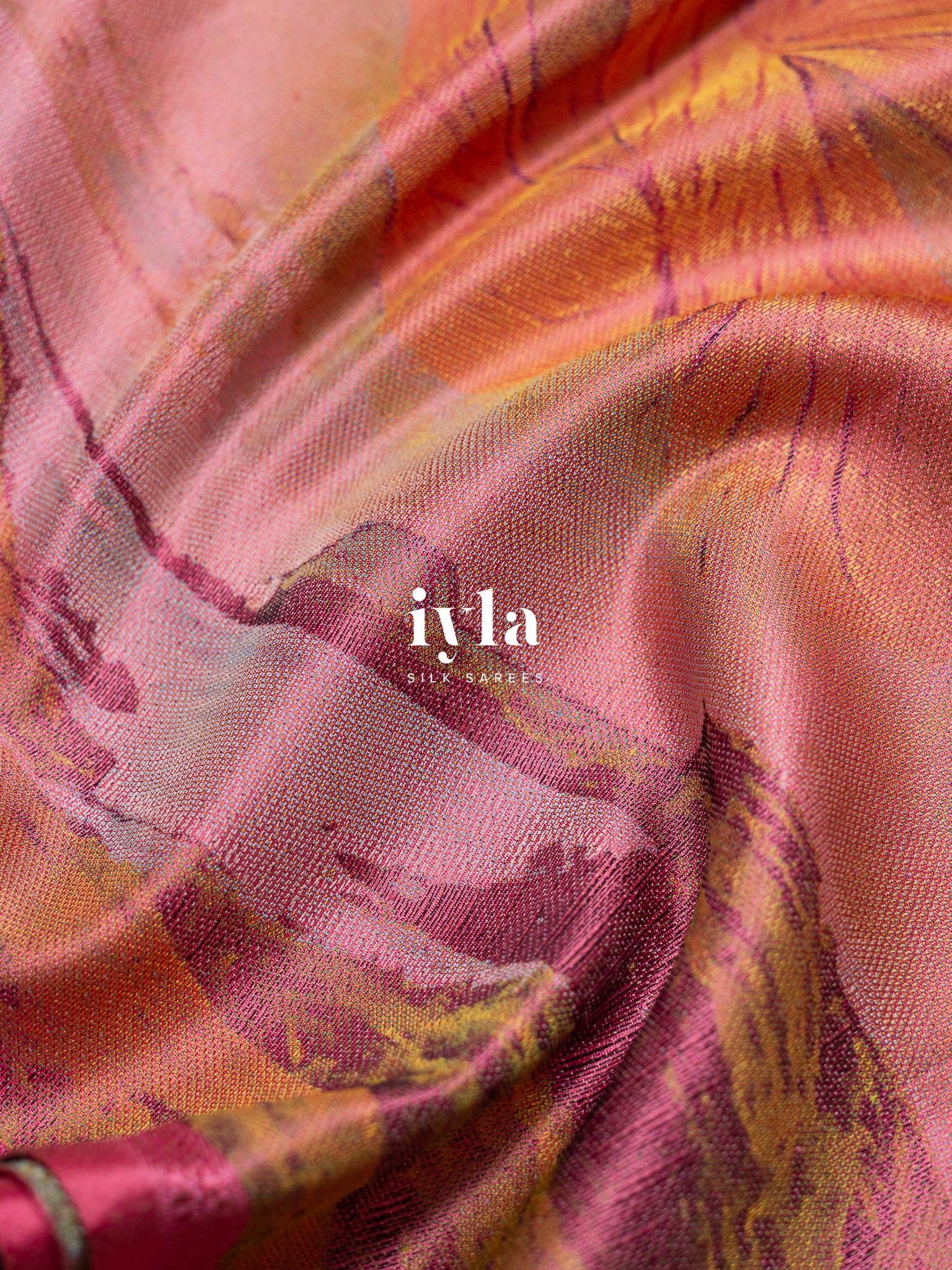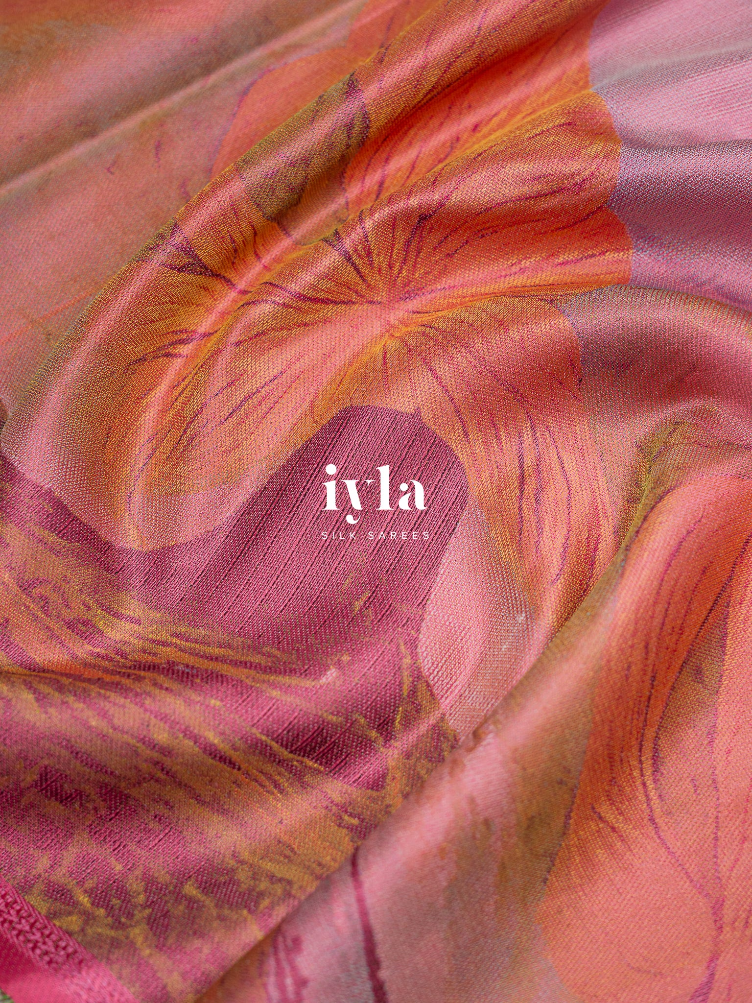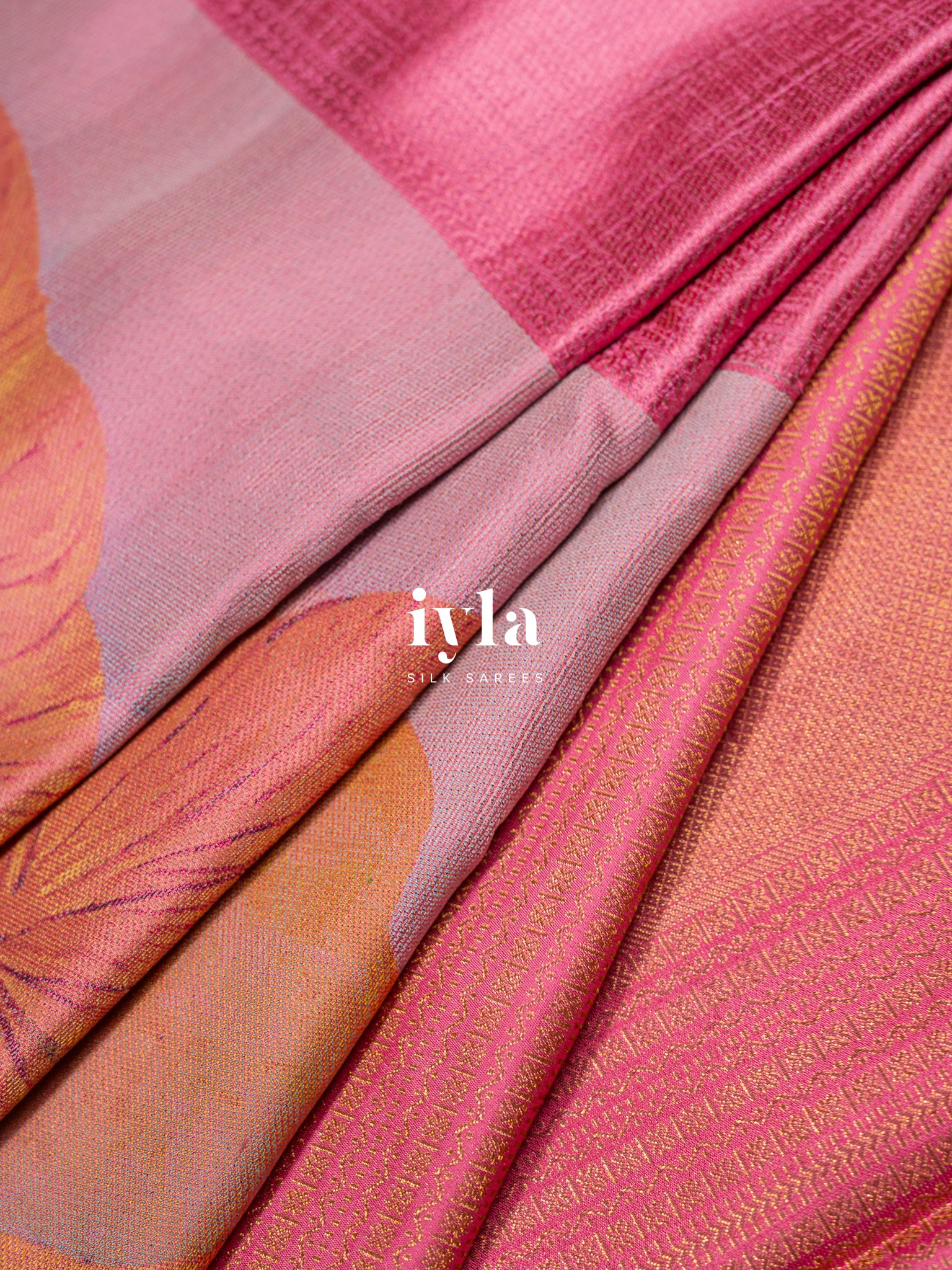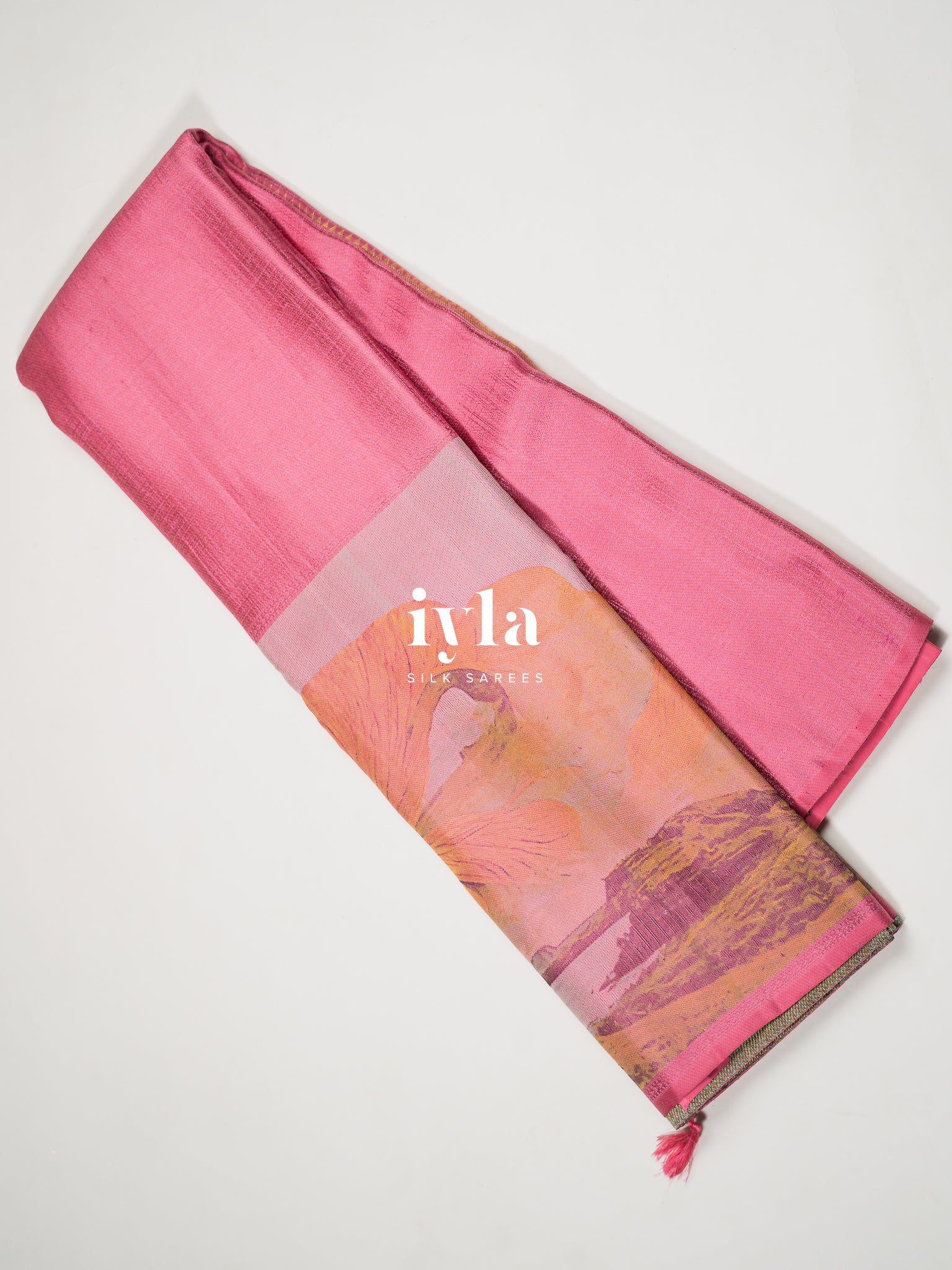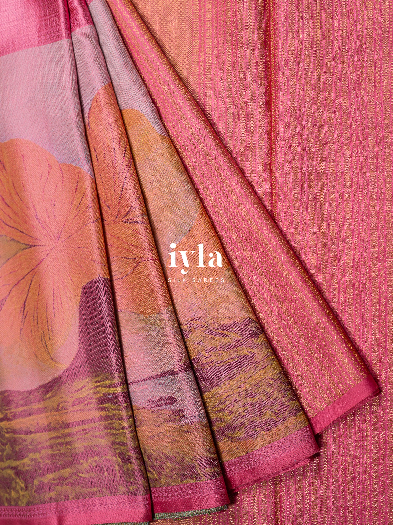 The Mountains of Iceland Kanjeevaram in Bubblegum Pink