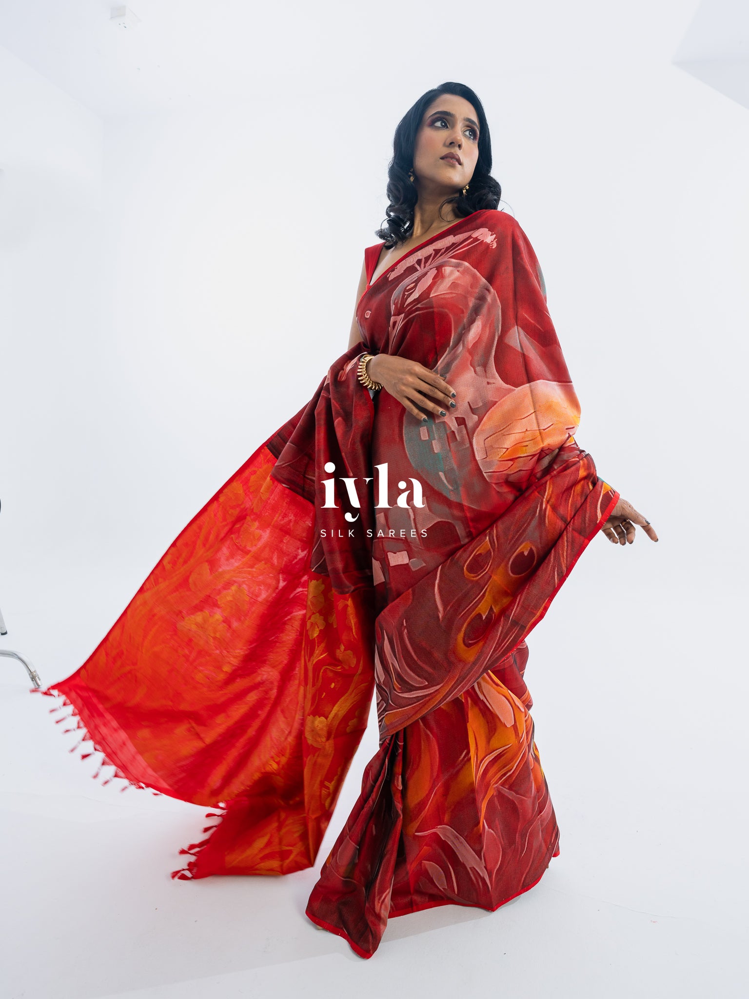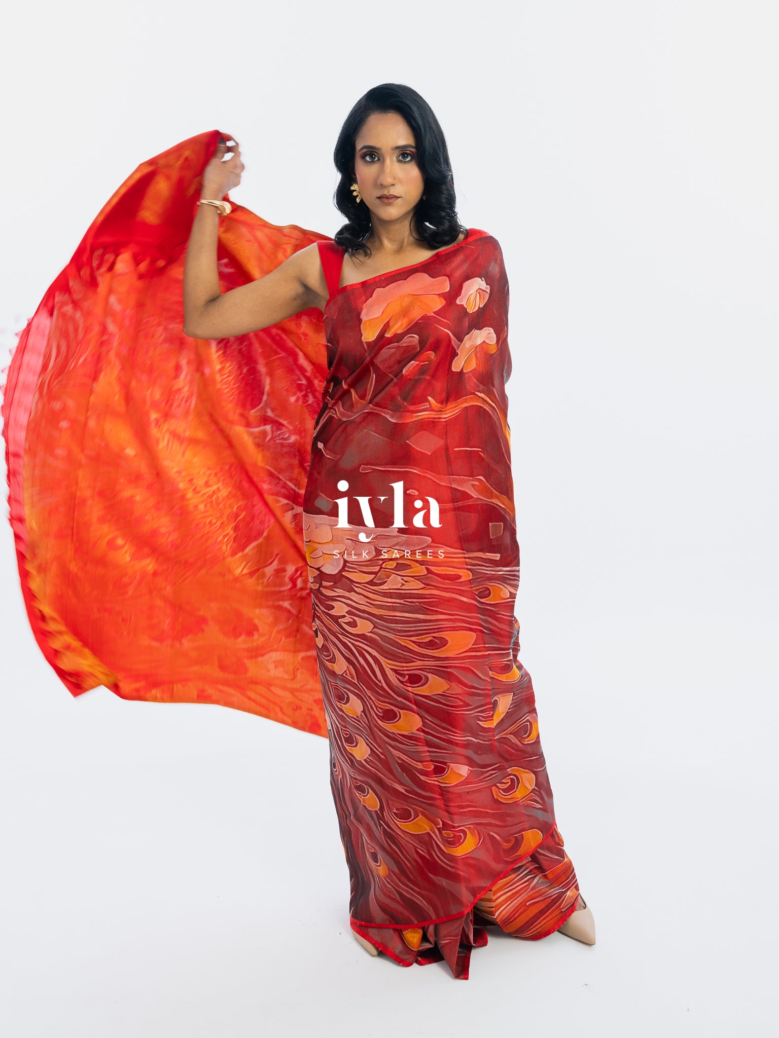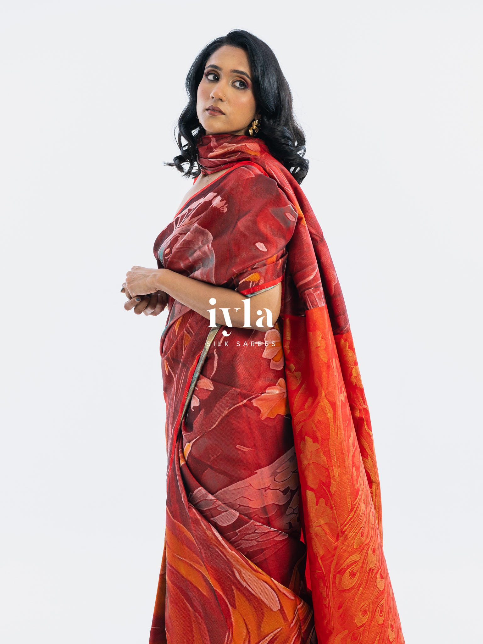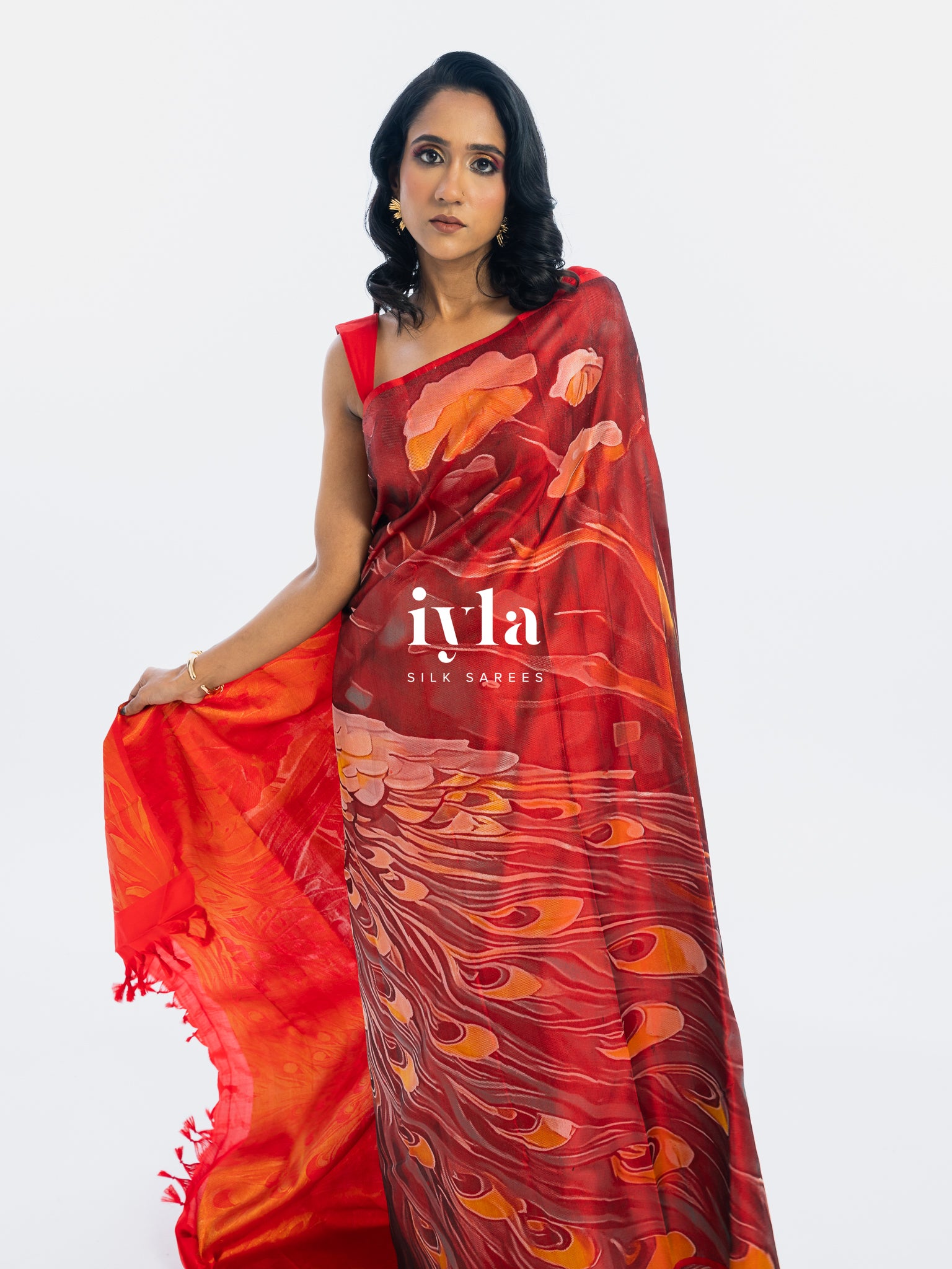 The result is bold, artistic, and unforgettable a saree that transforms the wearer into the very embodiment of regal presence.