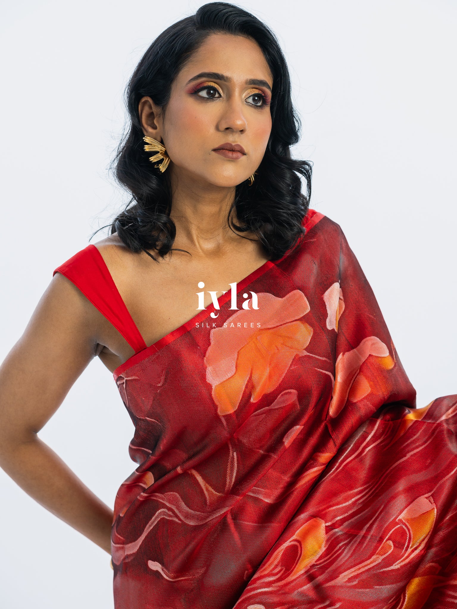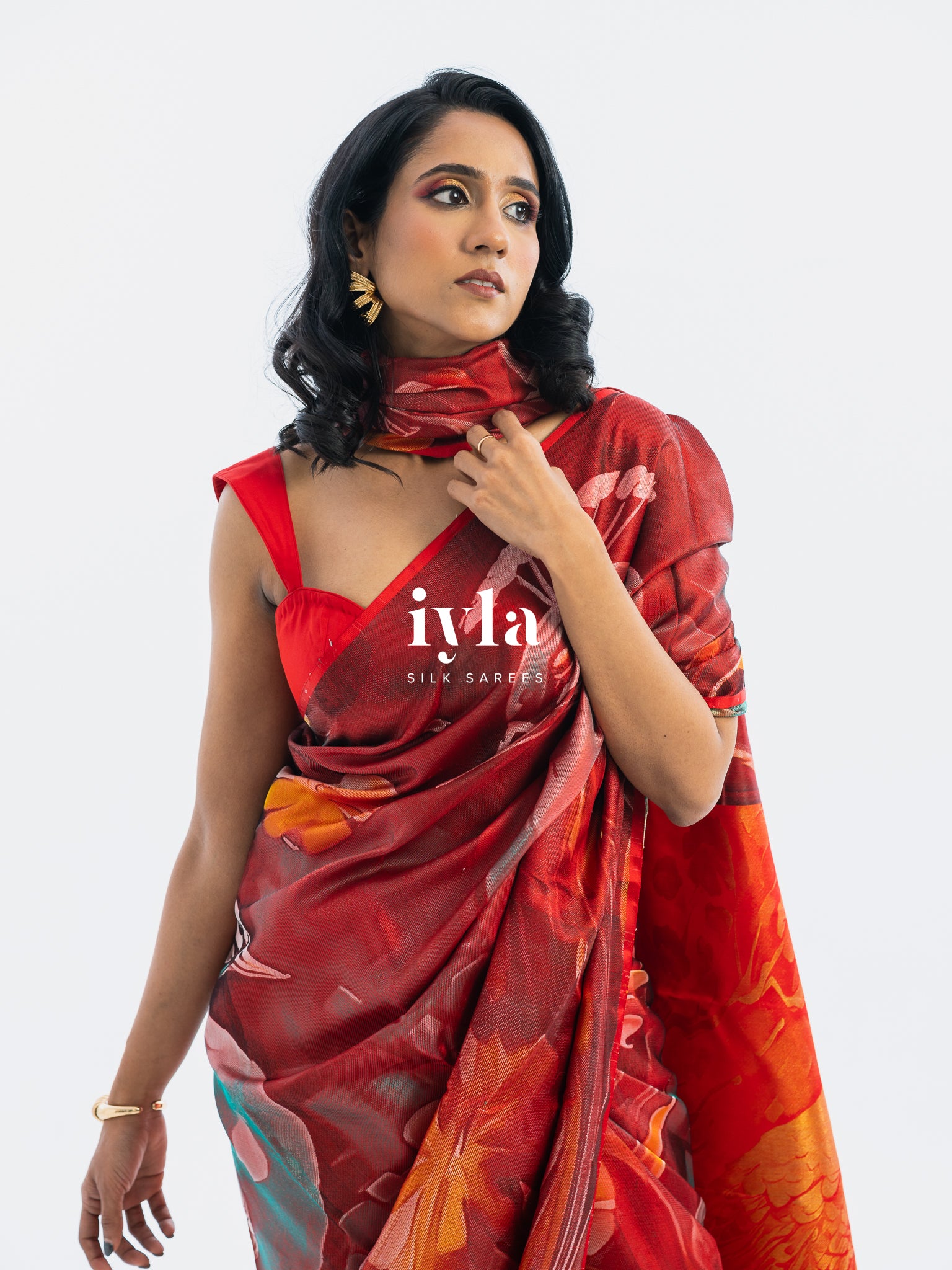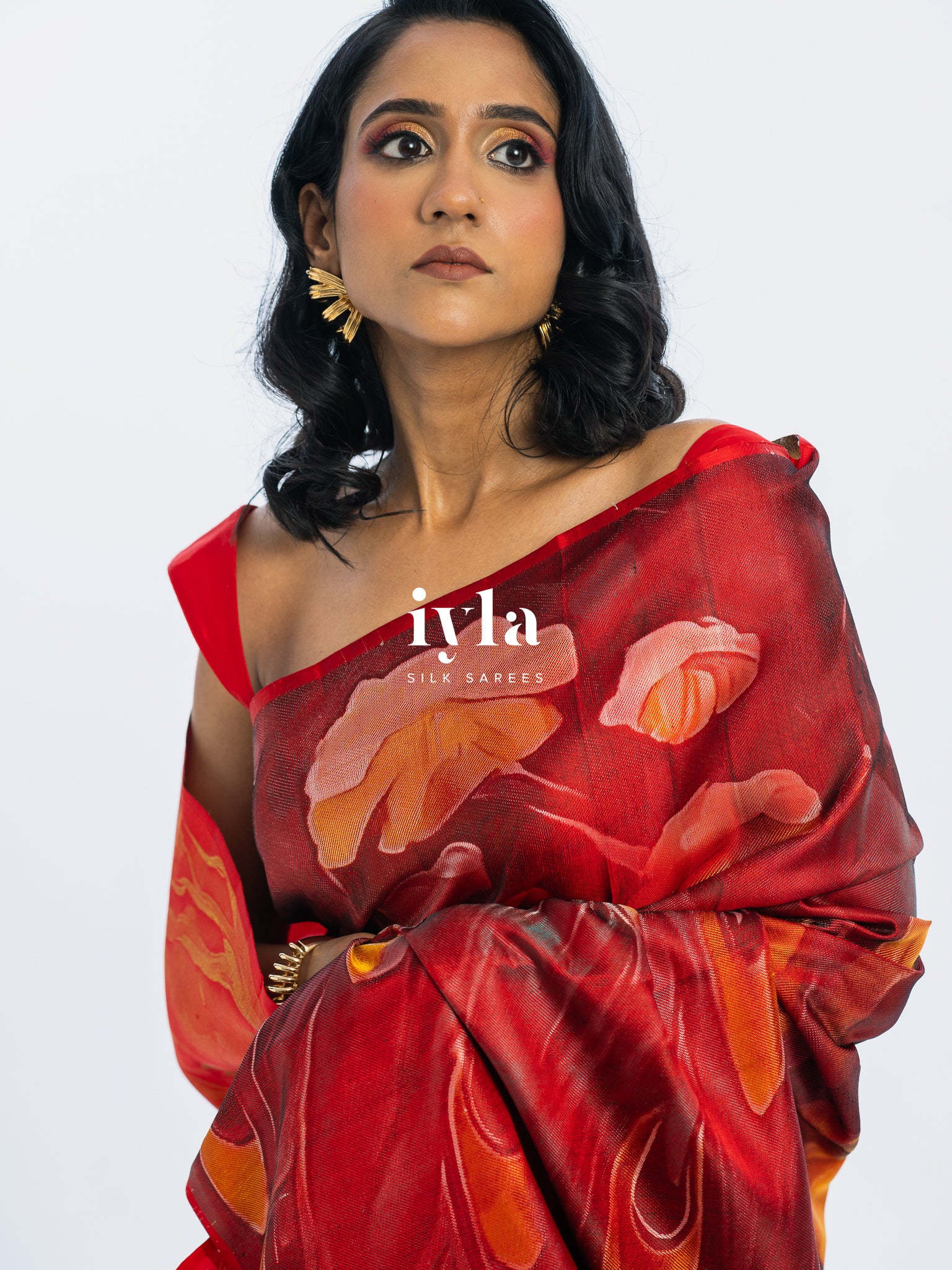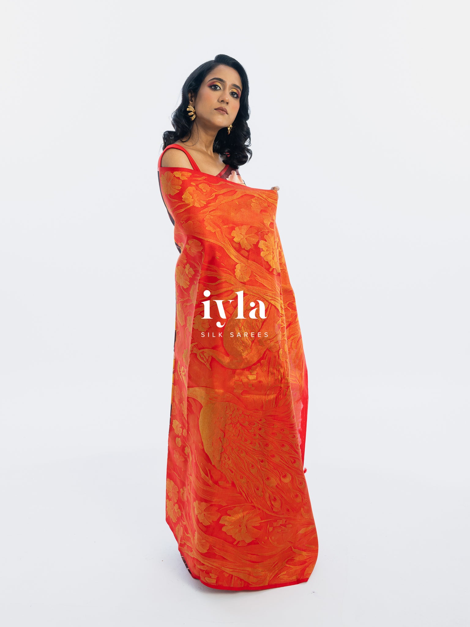The result is bold, artistic, and unforgettable a saree that transforms the wearer into the very embodiment of regal presence.