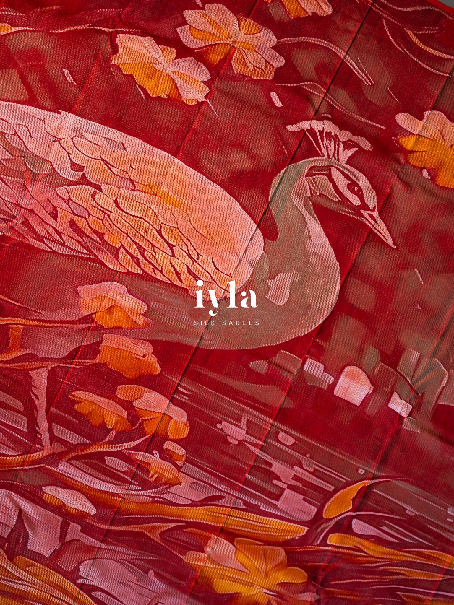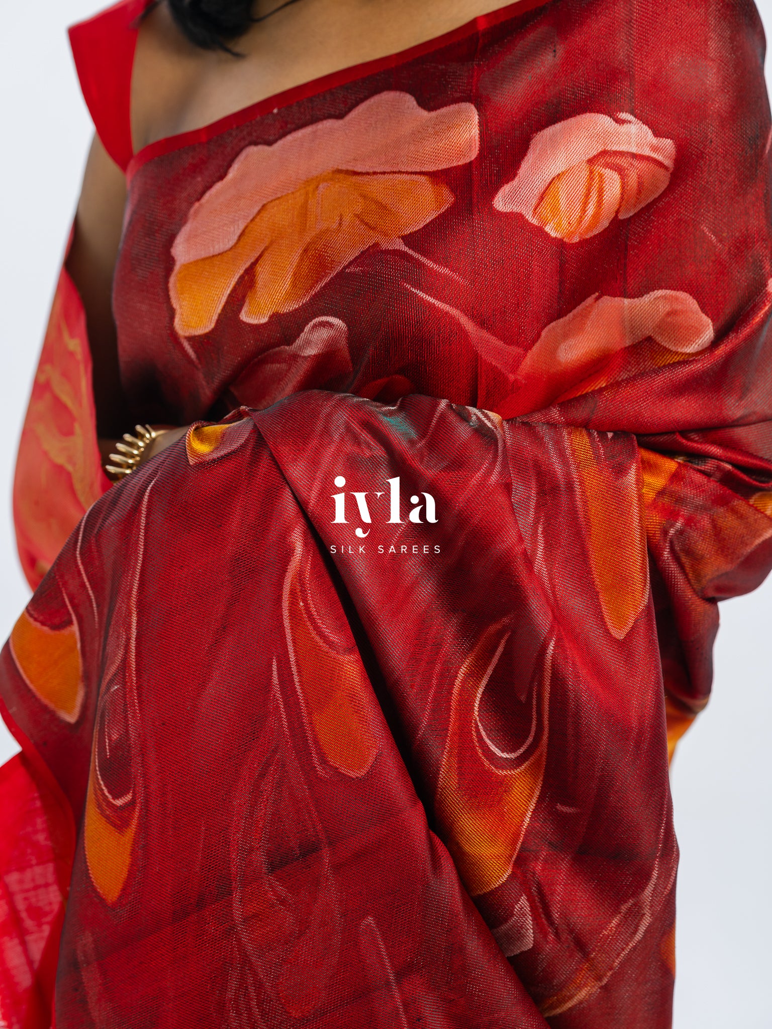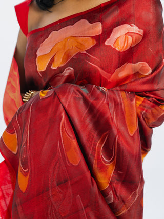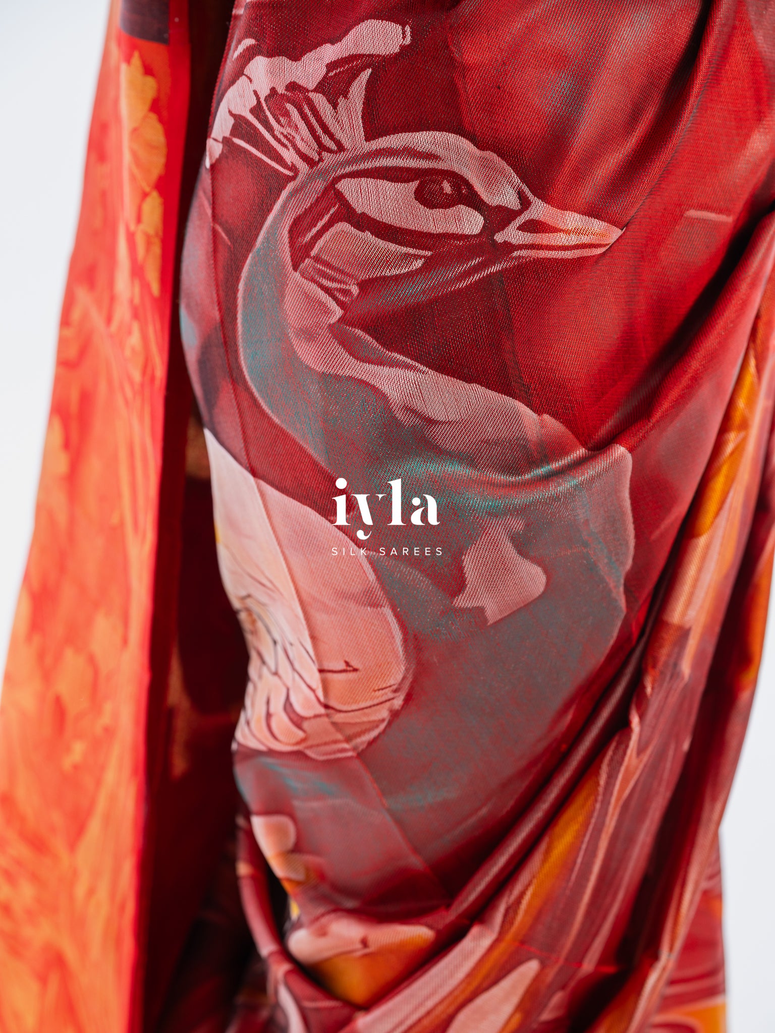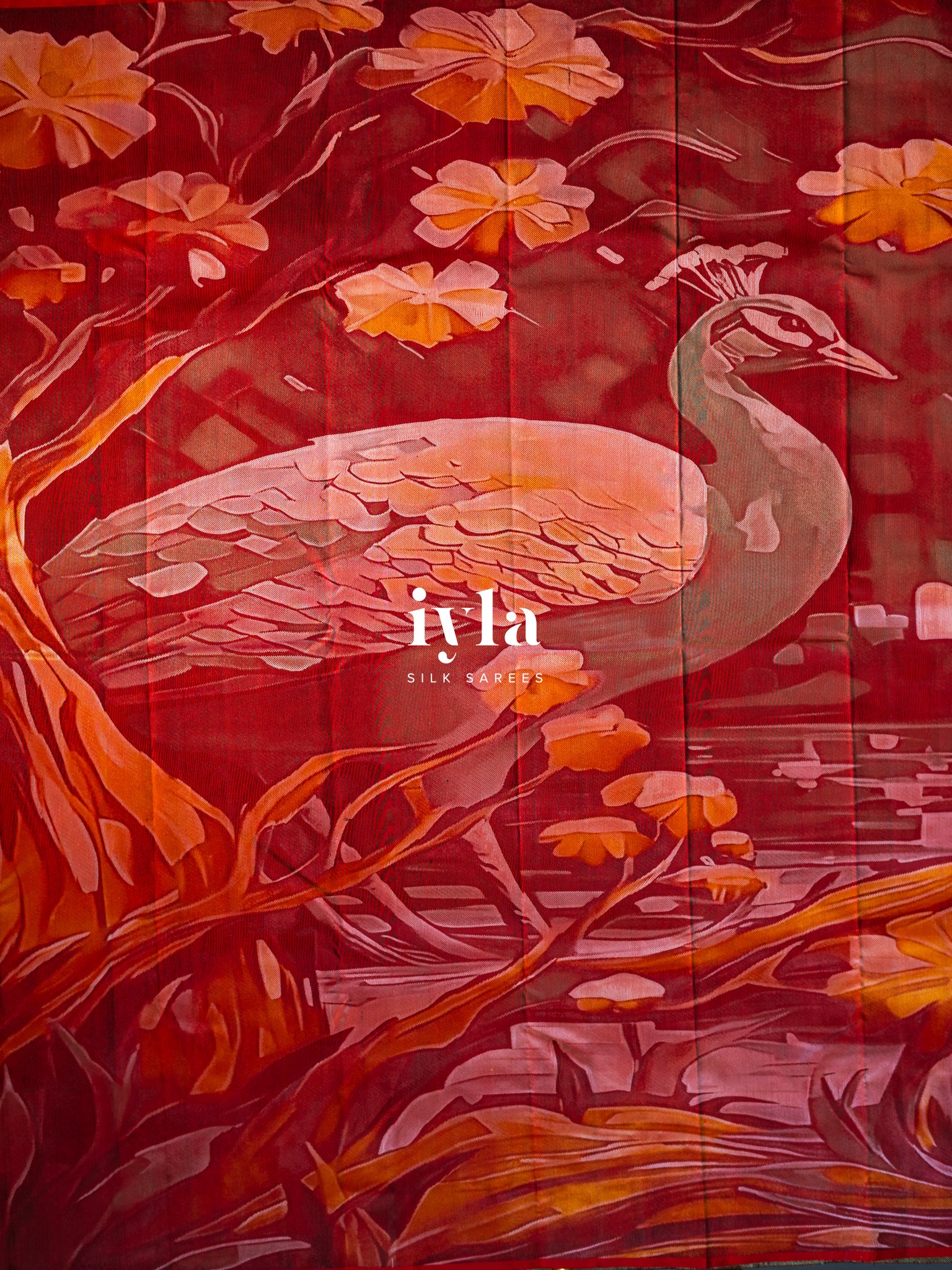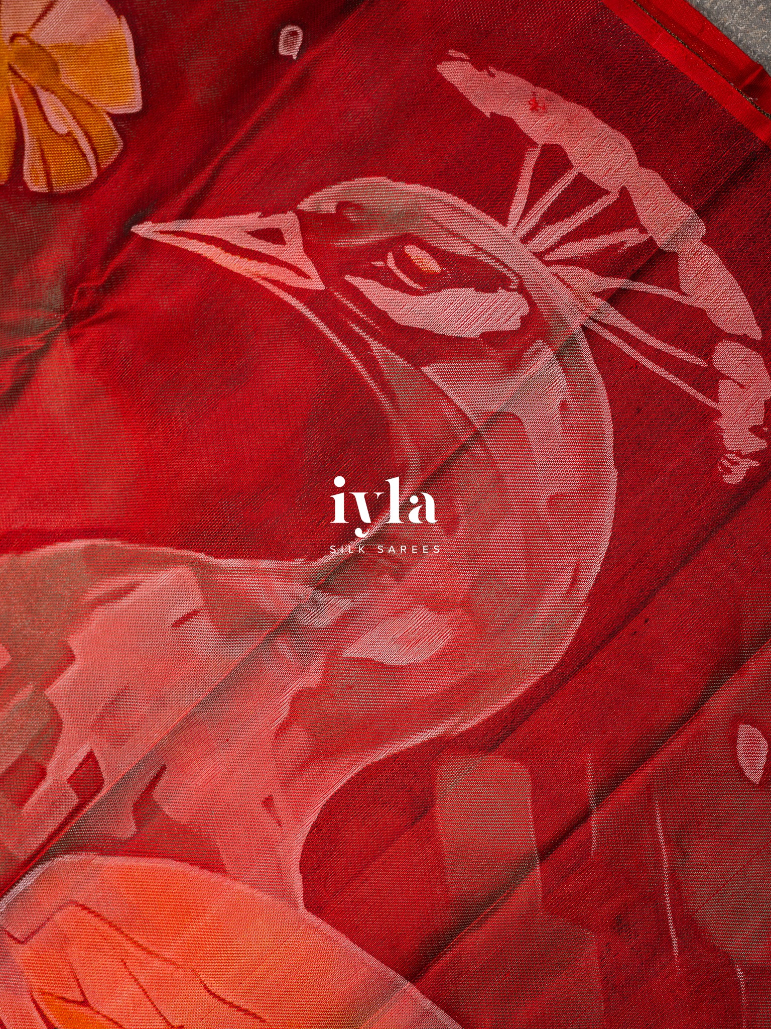 Crafted using five silk thread colours white, red, black, yellow, turquoise, and pink the weave creates depth reminiscent of an oil painting. The layered tones and intricate detailing give the illusion of brush strokes, yet every element is 100% handwoven.
