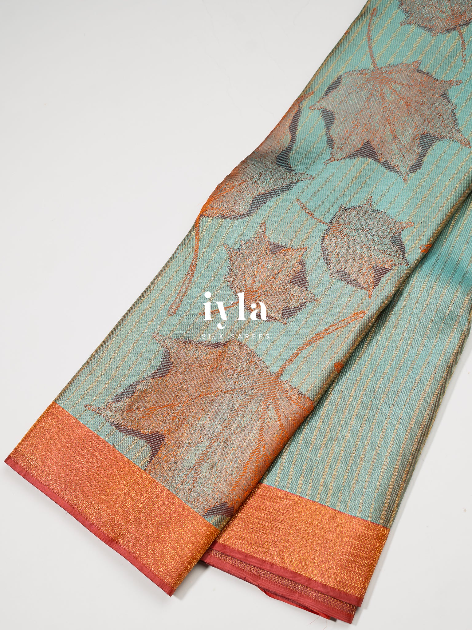The Tropical Foliage Kanjeevaram in Pearl Aqua