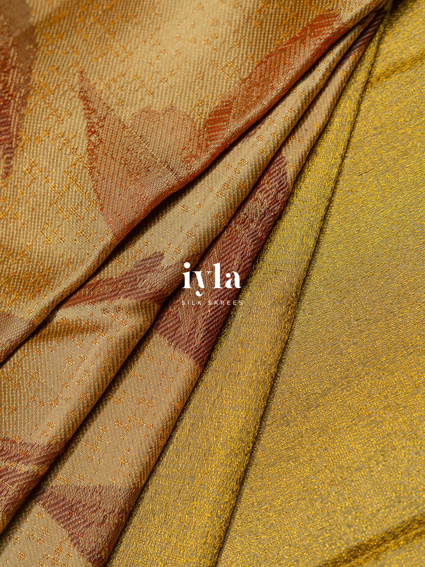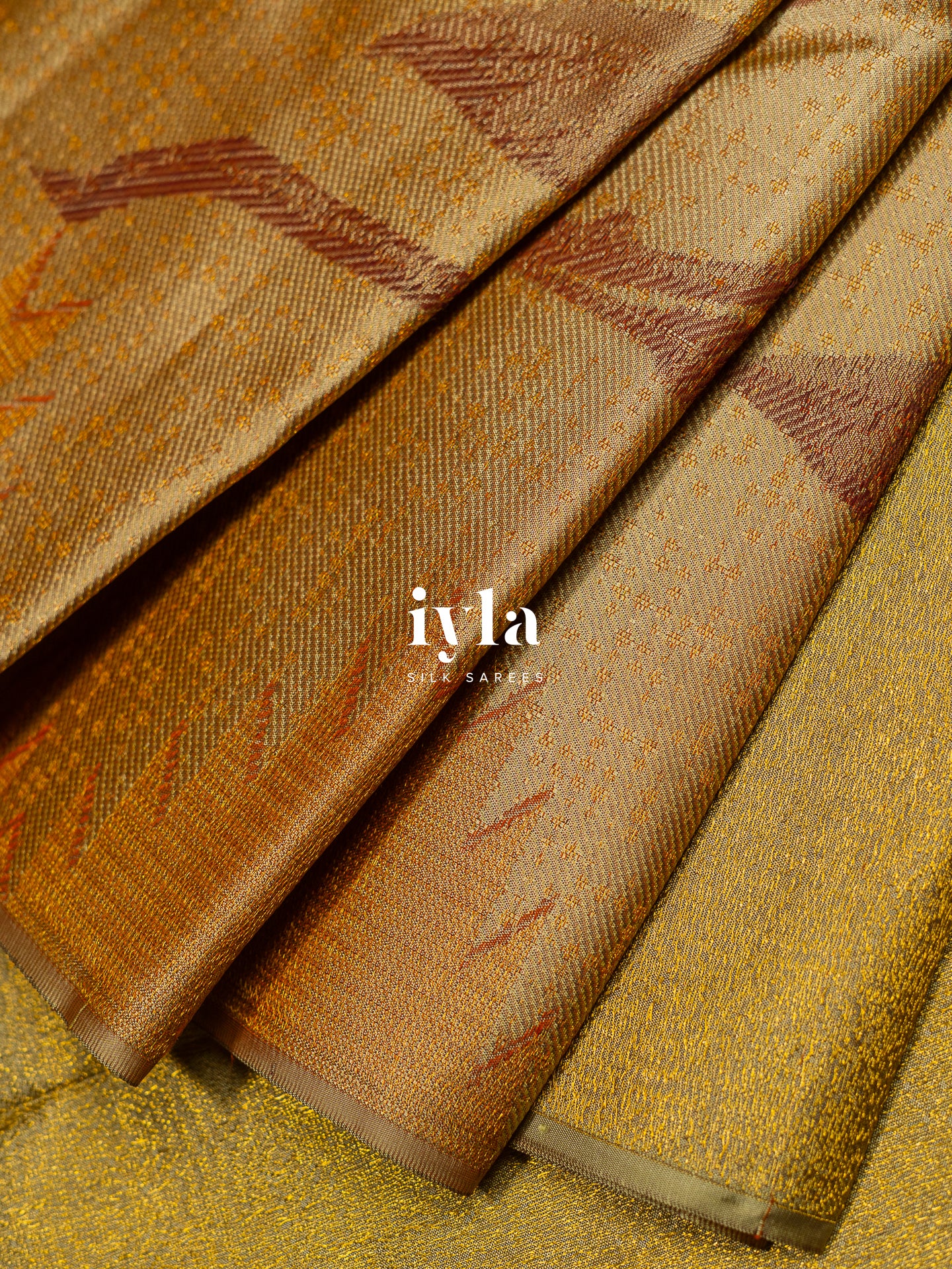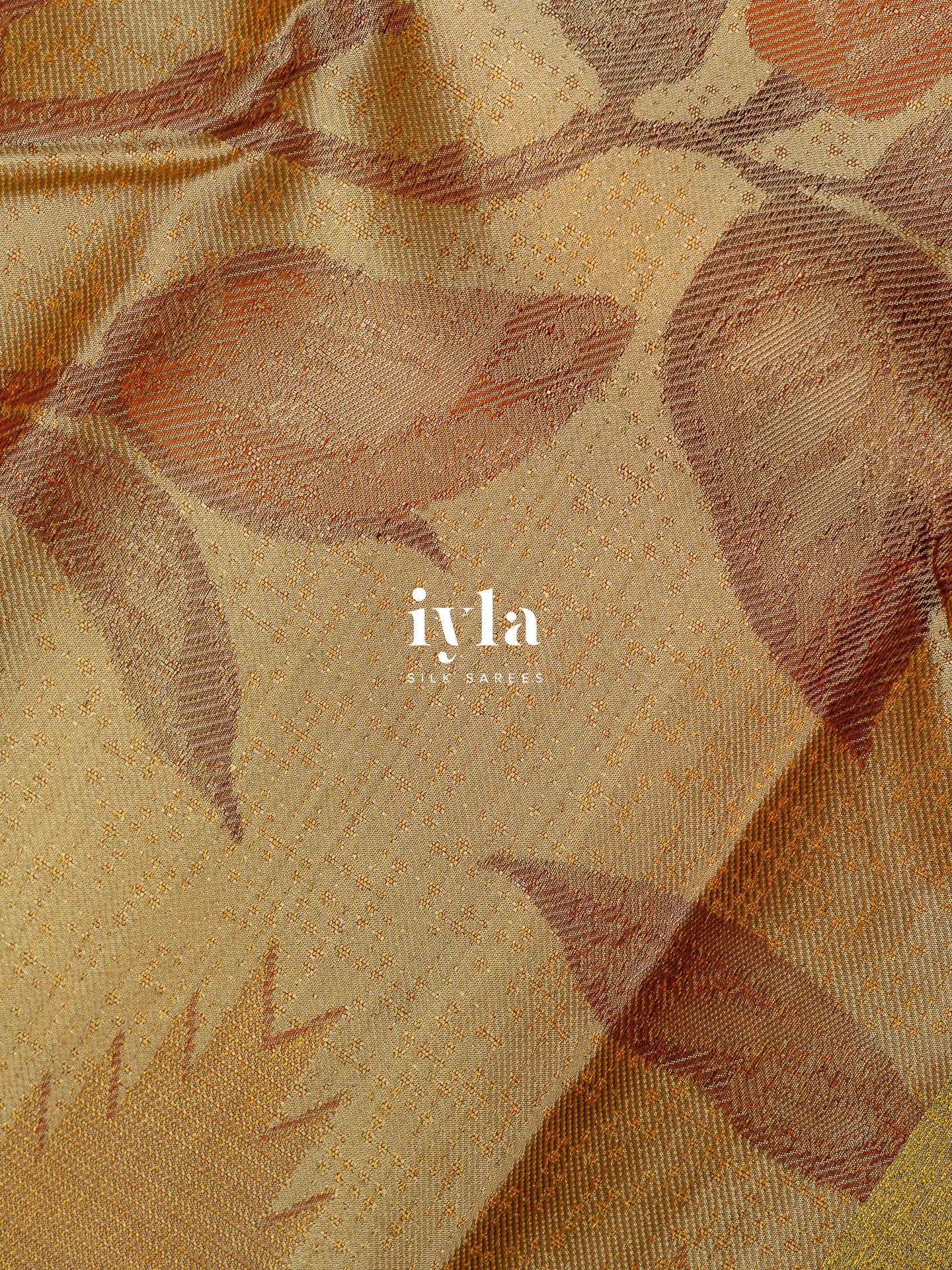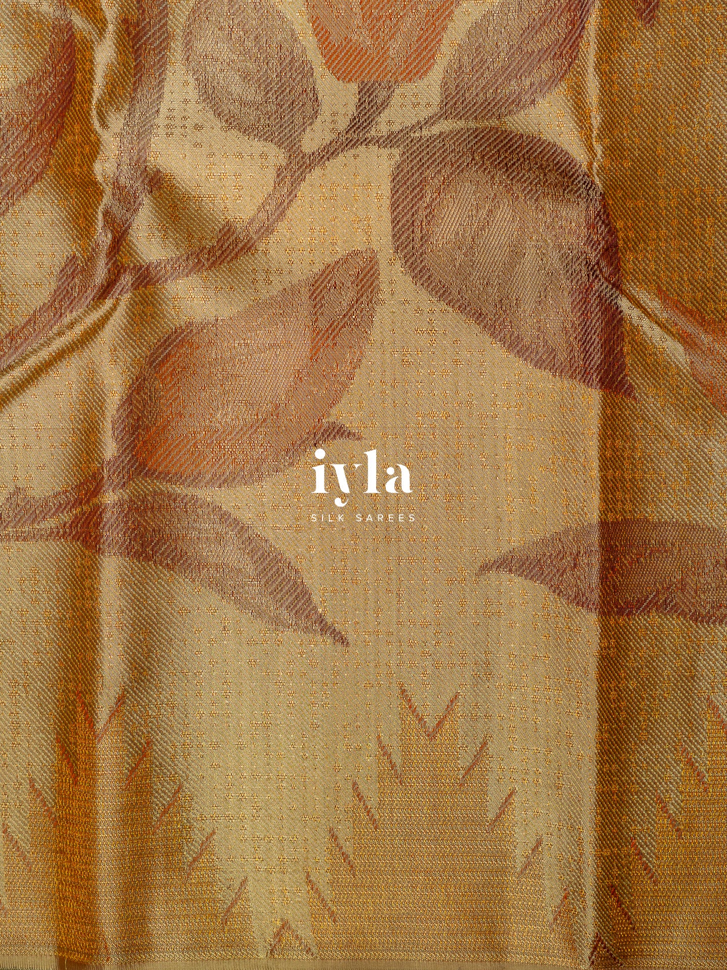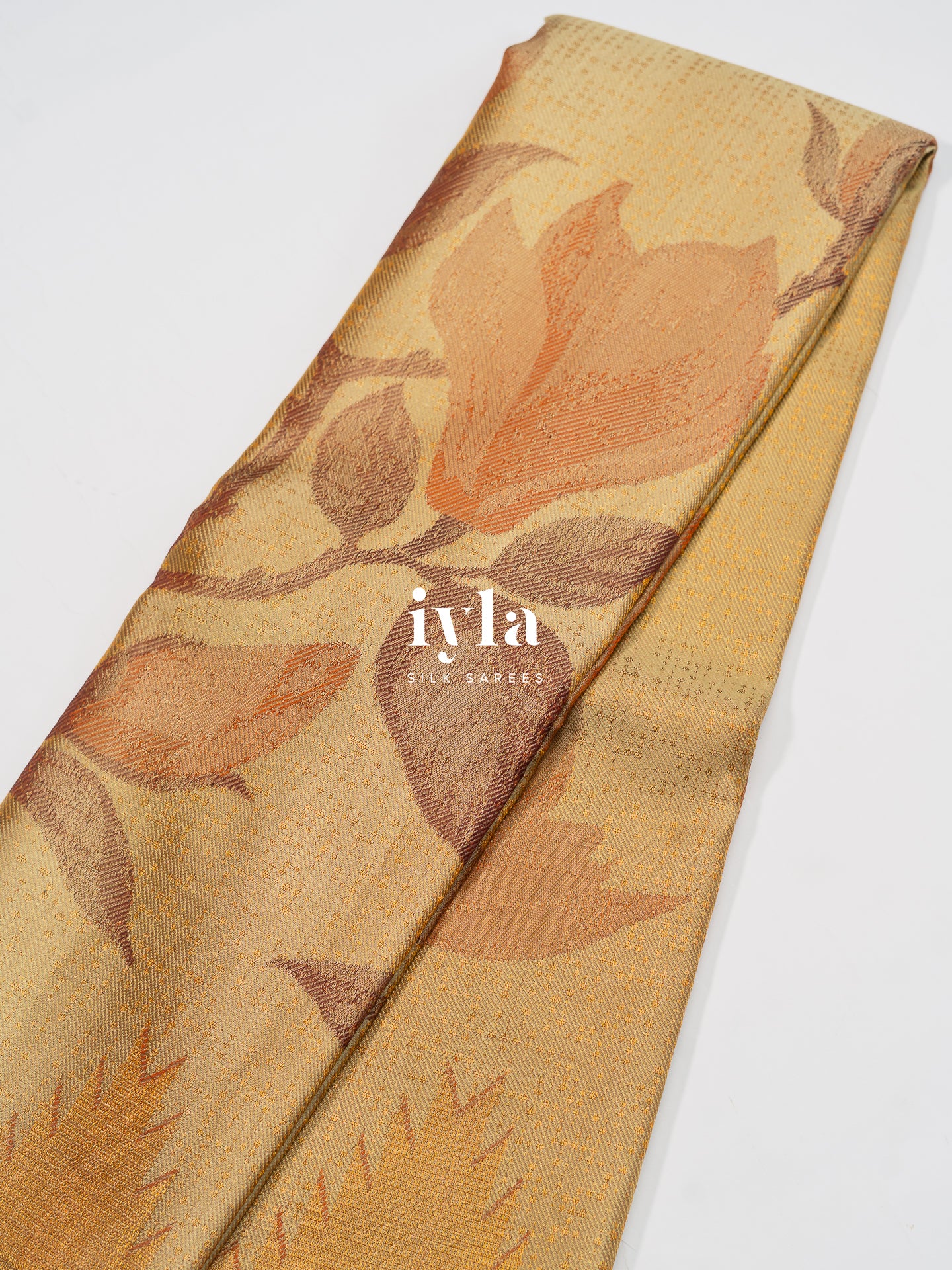 The Trumpet Lily Kanjeevaram in Gold Beige