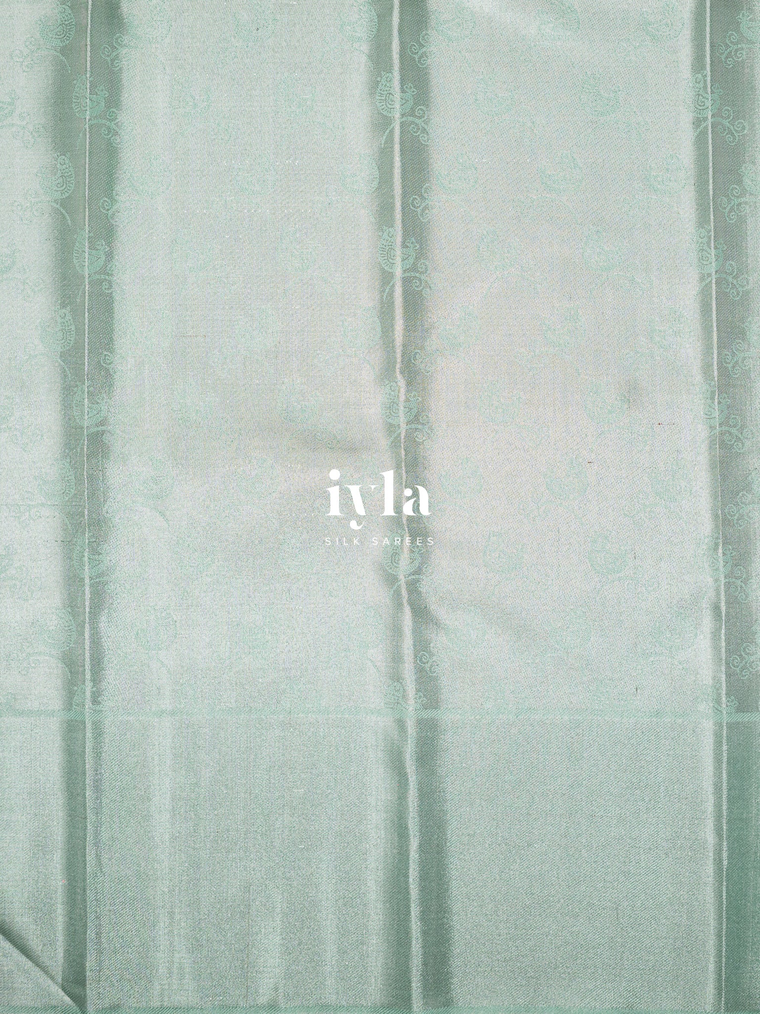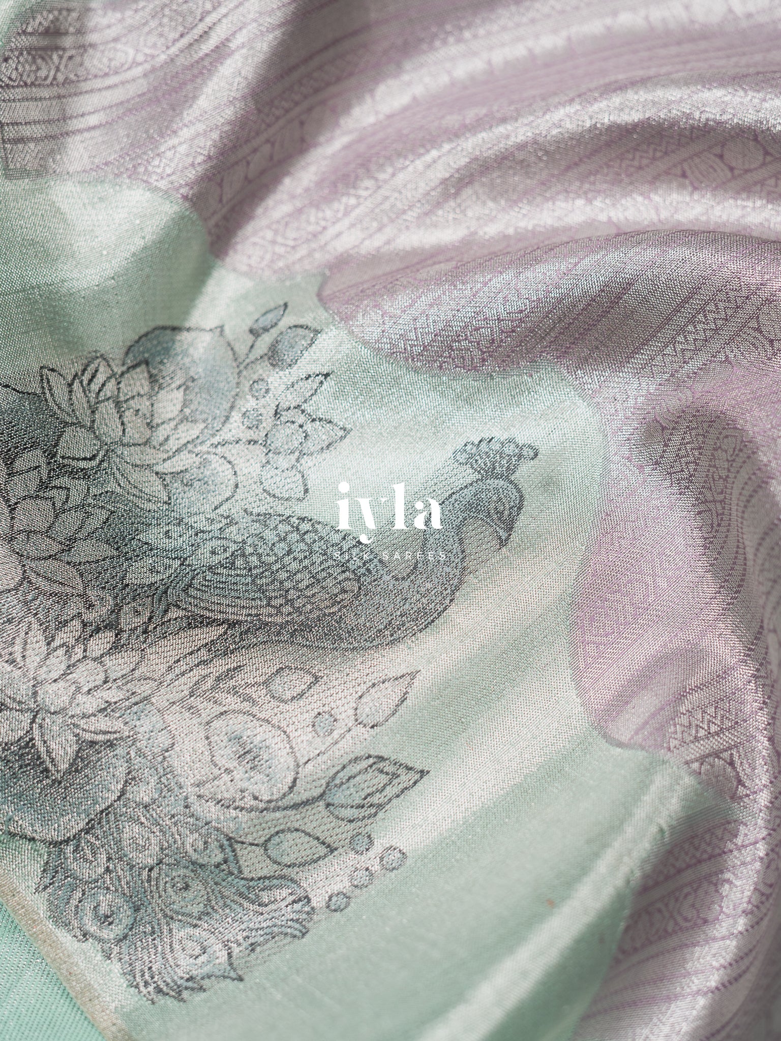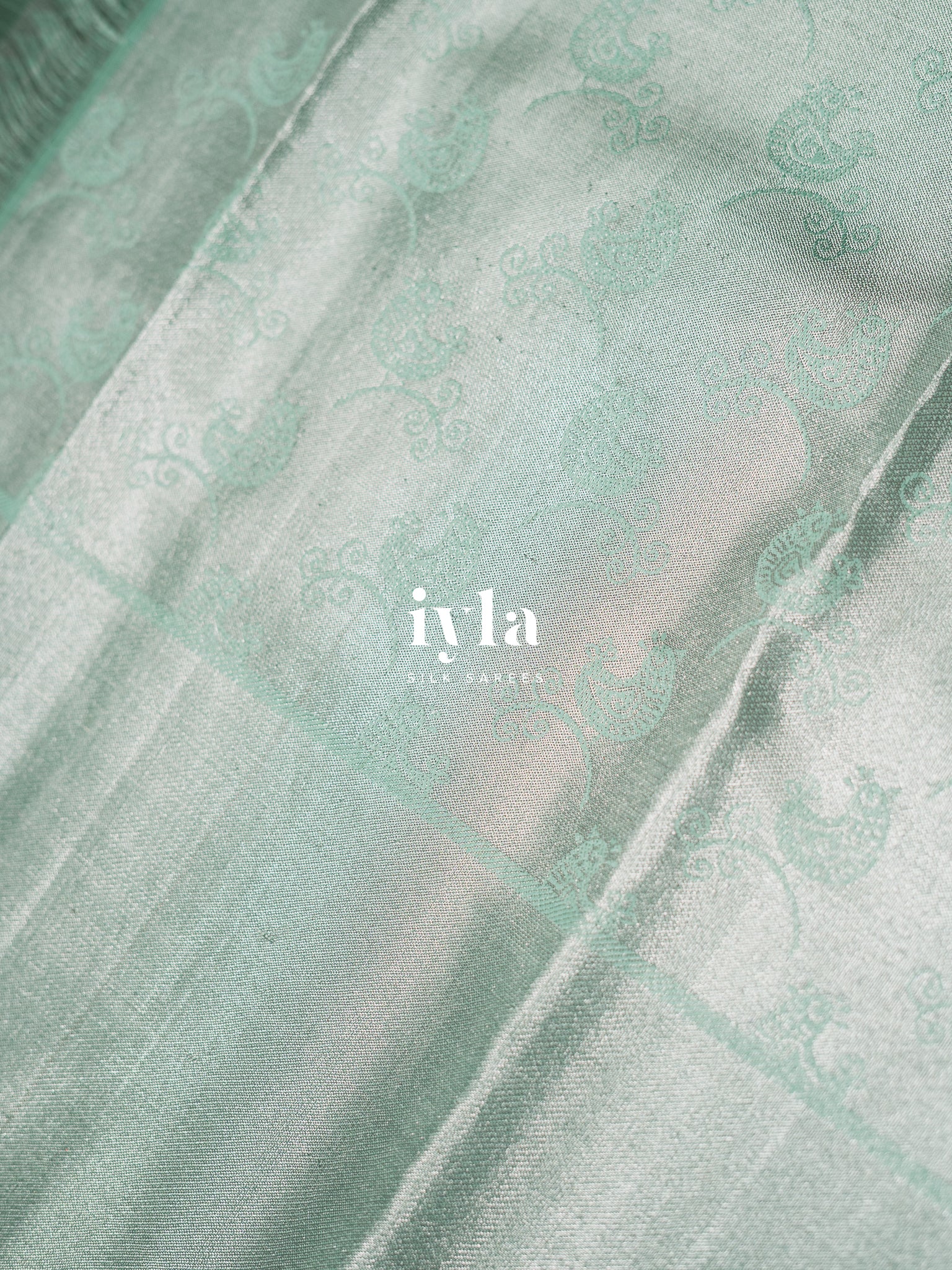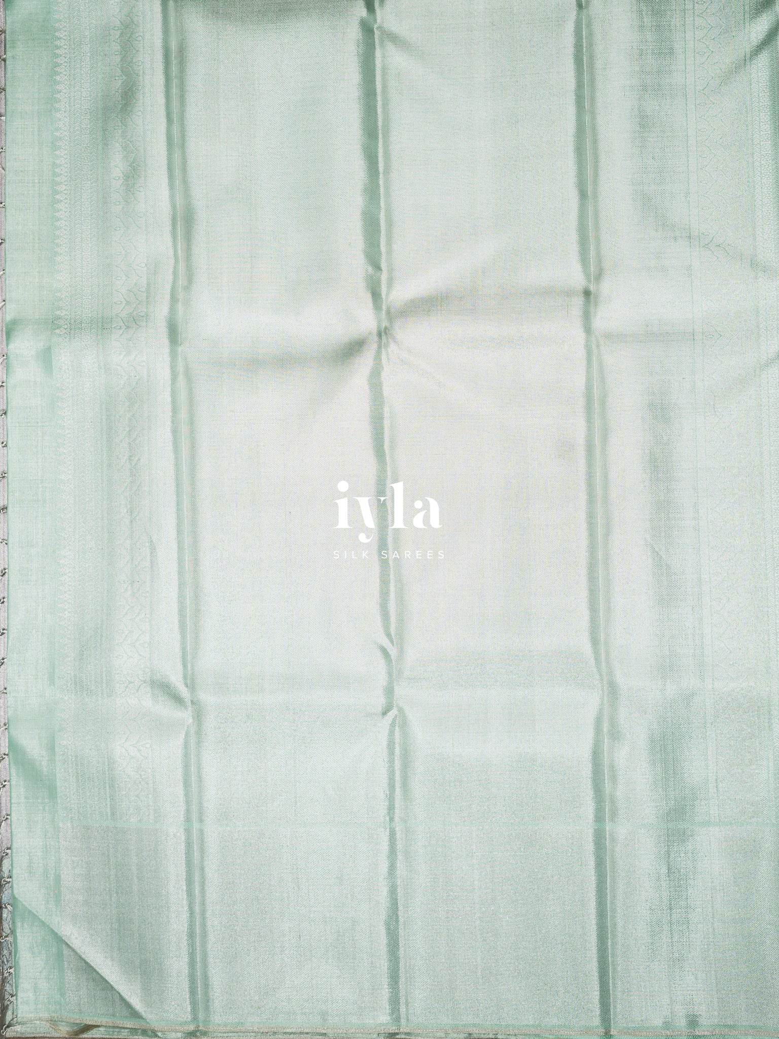 Blouse: Silver Zari with Pastel Green Silk Threads