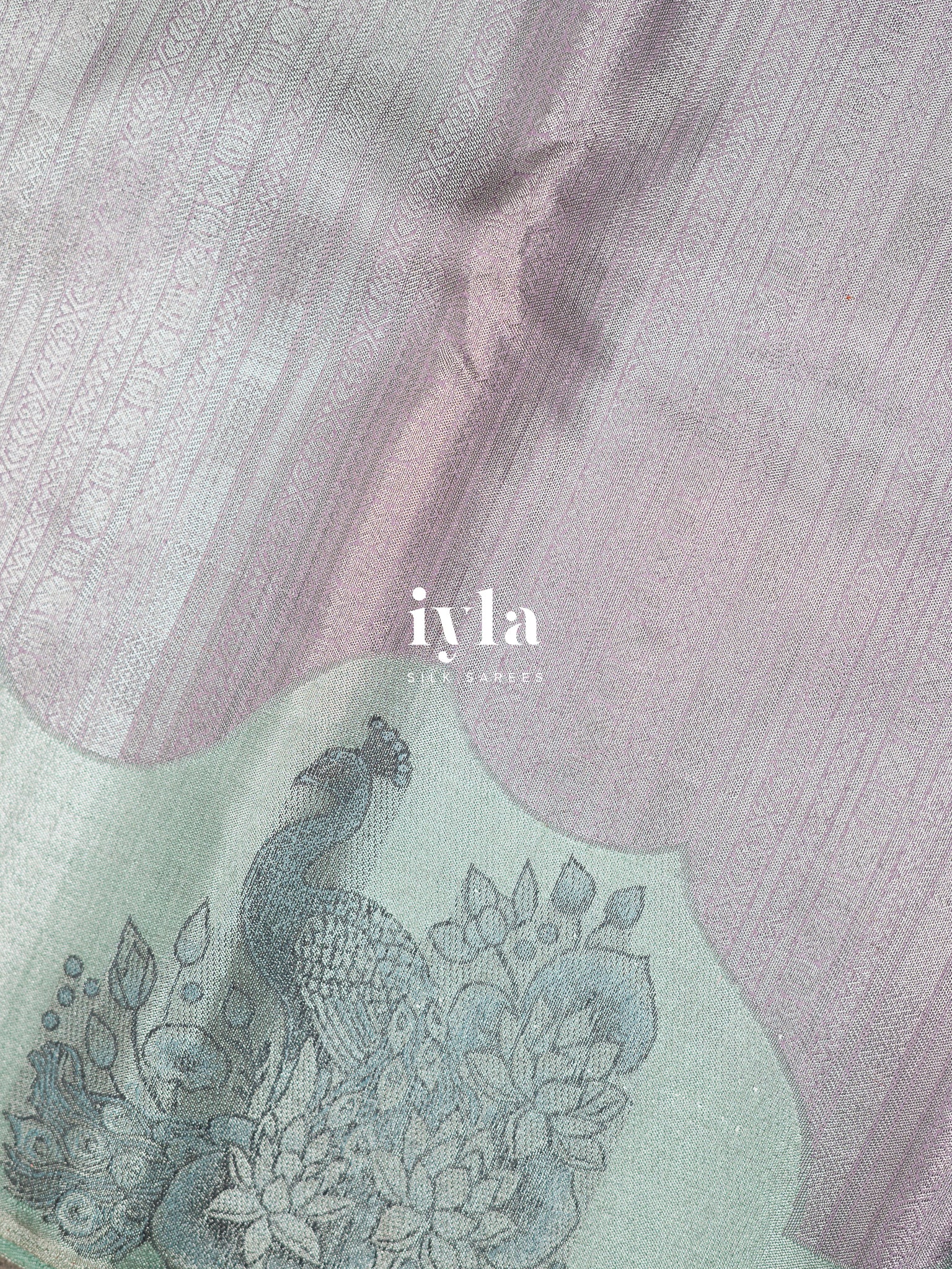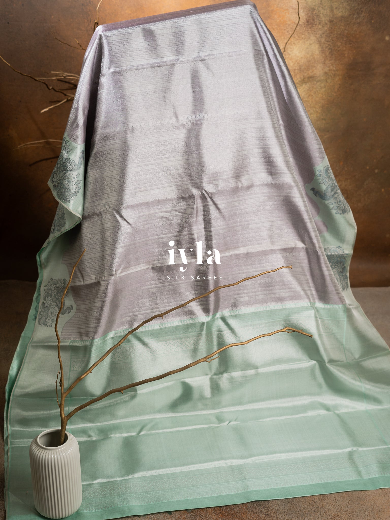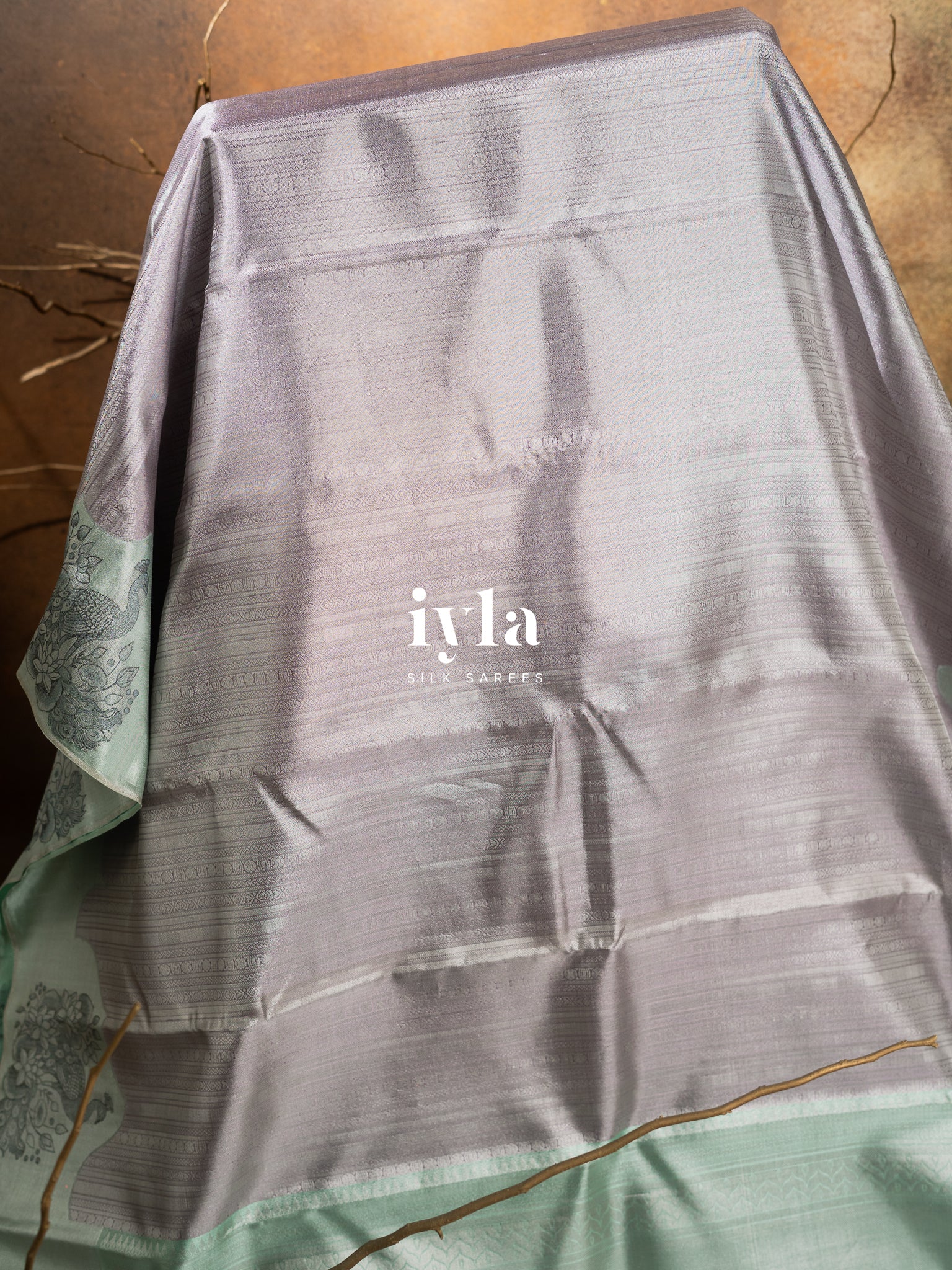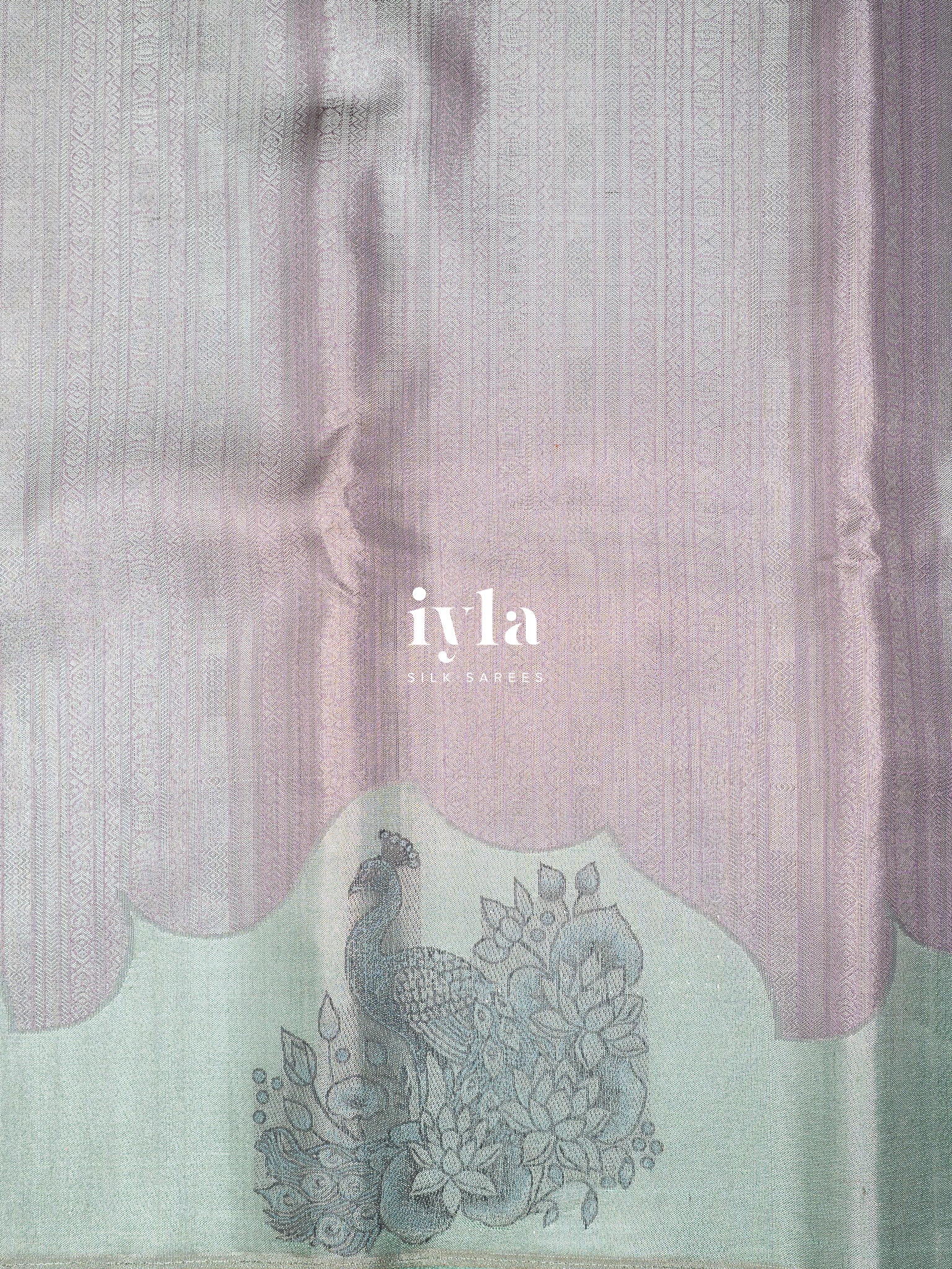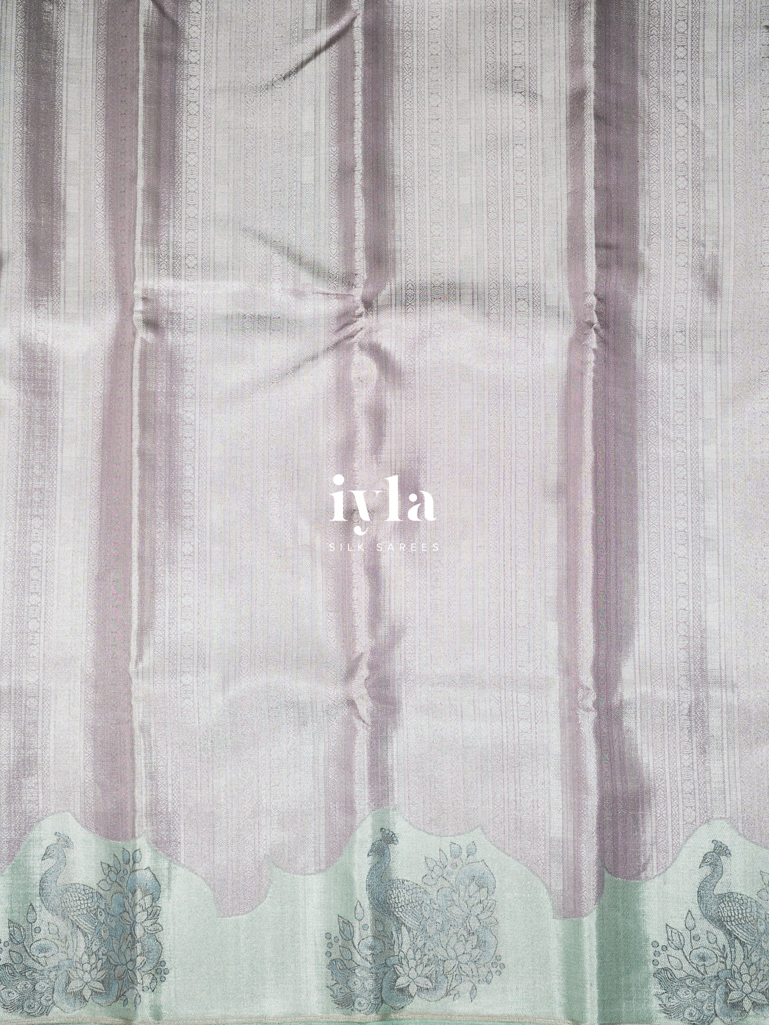 Blouse: Silver Zari with Pastel Green Silk Threads