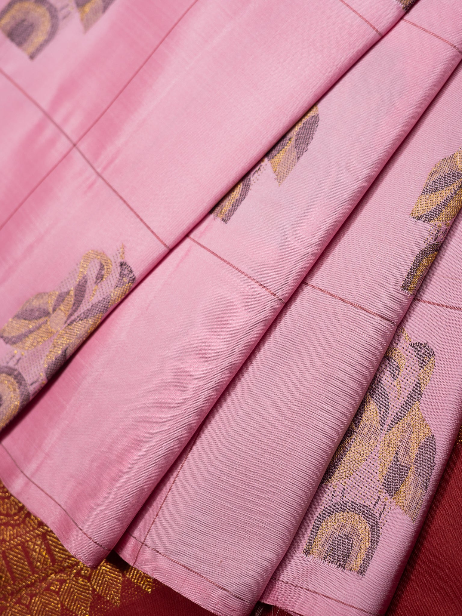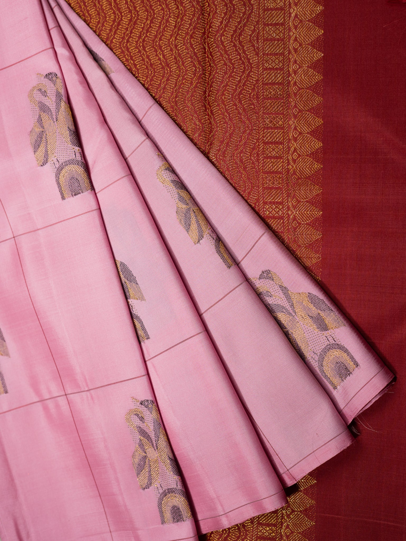 The Baby Pink Swan Pair Poetry Kanjeevaram